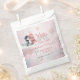 Cute watercolor baby penguin with snow falling all around and pink evergreen tree "Winter ONEderland 1st Birthday Party". Design is in pink, grey, dusky blue, off black and white. Simply personalise with your child's name and the date. Composite design by Holiday Hearts Designs.
