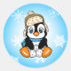 Cute Baby Penguin with Snowflakes Background Classic Round Sticker