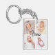 A Key Chain with 4 personalised images of a child and a name. Please replace the images with your own by clicking on "Personalise this template".