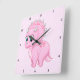 Cute Baby Pink Triceratops Dinosaur Square Wall Clock