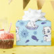 A cute baby polar bear pattern surrounded by blue fish, ice, and snowflakes, with a baby blue background.