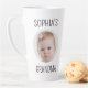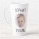 Celebrate the special bond between a grandchild and their grandpa with this heartwarming latte mug. Featuring a charming photo of little David, this mug is a perfect way to show Grandpa how much he is loved. The simple, elegant black text complements the baby's joyful expression, making it a delightful addition to any morning routine or coffee break. This mug is sure to bring a smile to Grandpa's face every time he uses it, reminding him of precious moments with his favourite little one.
