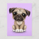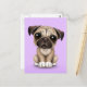Cute Baby Pug Puppy Dog on Purple Postcard