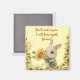 Cute Baby Rabbit Holding Sunflower | Square Magnet