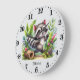 Cute baby racoon add name girls nursery Large Clock