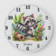 Cute baby racoon add name girls nursery large clock
