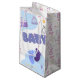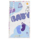 Adorable baby shower gift bag design featuring a cute baby, baby items, and a stork carrying a newborn. Perfect for baby shower gifts and party favors.