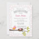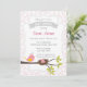 Baby shower invitation with bird design and floral background.