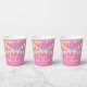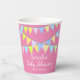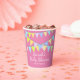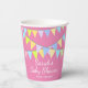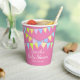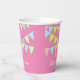 Cute baby shower party cups with custom kid's name. Cheerful design with coloured pennant flags on a string. Great for celebrations with friends and family. Add your own personalised text to celebrate your newborn girl or boy. Perfect for cocktails, BBQ, dinner, snacks, sweets etc. Pink or custom colour background.