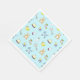 Cute pattern with baby items on the blue background: teddy, rubber ducky, pacifier, baby bottle, stroller... For a baby boy.