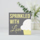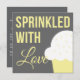 A cute, whimsical baby shower invitation featuring a cupcake with sprinkles and the text "Sprinkled With Love"