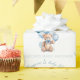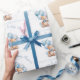 Cute personalised Baby Shower Wrapping Paper in soft blues and beiges, with the cutest baby bear and party balloons. Easily personalise the text.