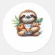 Cute Baby Sloth with Pumpkin Coffee and Pancakes w Classic Round Sticker