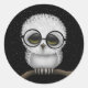 Cute Baby Snowy Owl Wearing Glasses with Stars Classic Round Sticker