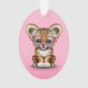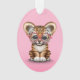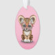 Cute Baby Tiger Cub Wearing Glasses on Pink Ornament