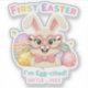 Celebrate your little one's very first Easter with this adorable design featuring a charming bunny, complete with heart-shaped glasses and a bow tie, surrounded by festive, colorful Easter eggs. The playful text 'FIRST EASTER I'm Egg-cited!' perfectly captures the joy and excitement of this special milestone. This design is perfect for memorable gifts to cherish those precious first holiday memories. A sweet and vibrant addition to any baby's first Easter celebration.