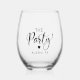 Cute stemless wine glass for the bride's bachelorette party guests featuring "The Party" in a chic script with a heart and the party location in simple modern typography. You can change the party destination to the name of the guest. A set of glasses that includes a "Wife of the Party" glass for the bride is also available (message us for the link).