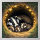 Cute canvas poster with an ai illustration of a a mama badger and her babies all napping in their underground tunnel called a sett.