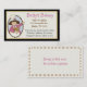 Fun whimsical business card done in a country primitive graphics, showing a cute baker girl in chef hat waving out of a oval cut out frame. A cutout style coupon is on the reverse side. Perfect for a bakery shop, party shop, or an independant custom baker. Customise the text fields to personalise for yourself or your shop.