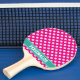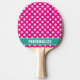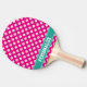 Cute ball pattern print ping pong paddle for table tennis chick. Personalised name or monogram ping pong paddle for table tennis. Sports game Birthday party gift idea for sporty men women and teen school kids (boy or girl). Add your own surname or monogrammed letter initials. Custom background colour ie neon pink and turquoise blue. Fun for player, coach or club house. Also great as college dorm accessories for students. Unique Holiday presents for children, grandson, son, daughter, granddaughter, mum, sister, friend etc. Leisure equipment with novelty sports graphics.