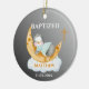 A Baptism / Christening ornament featuring a watercolor cartoon baby penguin asleep on a moon crescent sitting on a cloud with a black gradient background. A lovely gift to give to parents to celebrate their little ones baptism or Christening . All text can be amended. Customise Baptism to Christening or Holy Communion, then personalise with the baby's name and the date. A great gift and keepsake to treasure for years to come.