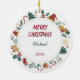 Here's a cute personalised ornament for anyone who loves a little Basenji dog. The front has a beautiful watercolor image of a brown and white Basenji hound. The dog portrait is framed within a colourful circle wreath made up of various Holiday images, including a snowman, bells, candy cane, stocking, holly, and more! The back of the ornament has the same wreath image with a Christmas and New Year's greeting. Be sure to update the custom text field for the appropriate name and year. And see more dog images and products at Dog Village.