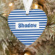 Cute Basic Stripes Blue Custom Name Heart Pet Ornament