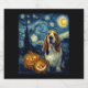 Cute Basset Hound Dog Halloween Jack O Lantern Pumpkin Face Starry Night Van Gogh Style