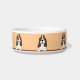 A cute cartoon brown Basset hound breed dog image waits, looking sad, out on this ceramic custom dog food bowl. There are 6 of them going almost all the way around the dish. It has room for your dog's name in the middle. Replace the sample name in the template.