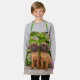 Two young Bavarian Mountain Hound dog puppies, 8 weeks old, sitting faithfully side by side on a bench in a flowering garden. A cute doggy photo taken by Katho Menden, this apron is an enchanting gift idea for dog and pet lovers.