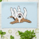 Funny Beagle cartoon dog laying on back with legs in the air. This cute decorative kitchen towel makes a thoughtful housewarming gift or holiday stocking stuffer for a dog mum, dog dad, or anyone who loves Beagles! Visit Jenn’s Doodle World for even more original dog breed themed home decor and animal lover designs.