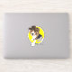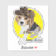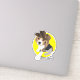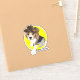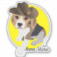 Cute Beagle Puppy Dog with Hat Illustration on Yellow background with custom name. This kawaii beagle pup is a tricolor, black brown and white, with a cowboy style hat sitting on her head. This cutest beagle dog is sitting within a yellow circle. There is space for a custom text or name at the base of the beagle puppy drawing illustration. This would make a great named sticker for kids.