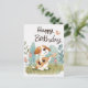A cute watercolor beagle plays the guitar for a happy birthday.