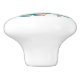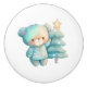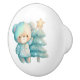 A ceramic knob with an adorable illustration. A cosy bear with stars and sparkles in its fur. Standing beside a Christmas tree. Pastel blue-green colour. Whimsical and cute.