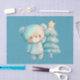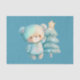Tissue paper with an adorable illustration. A cosy bear with stars and sparkles in its fur. Standing beside a Christmas tree. Pastel blue-green colour. Whimsical and cute.
