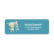 Address labels with an adorable illustration. A cosy bear with stars and sparkles in its fur. Standing beside a Christmas tree. Pastel blue-green colour. Whimsical and cute.