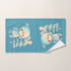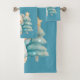 Cute Bear and Christmas Tree Teal Holiday Bath Towel Set