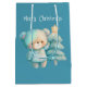 Cute Bear and Christmas Tree Teal Holiday Medium Gift Bag