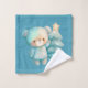 Towel set with an adorable illustration. A cosy bear with stars and sparkles in its fur. Standing beside a Christmas tree. Pastel blue-green colour. Whimsical and cute.