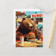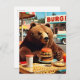 Cute Bear at the Diner With a Cheeseburger Feast Postcard