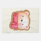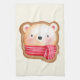 Kitchen towel with a cute and adorable bear face set on a cookie background frame. Wearing a red and white striped scarf.