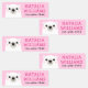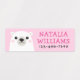 Waterproof property labels featuring a cute cartoon polar bear cub on a pink (or custom colour) background with customisable name and telephone number. Great for labelling your belongings
