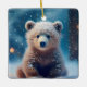 Cute Bear Cub In Snow Covered Forest Ceramic Ornament