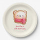 Cute Bear Face in a Red Scarf Birthday Paper Plate