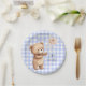 Cute Bear Floral Gingham Pattern Baby Boy Shower Paper Plate