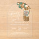 Cute Bear, Green Balloons, First Birthday Acrylic Invitations