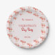 Valentine's day party paper plates featuring a cute bear and hearts pattern paired with your personalised information written in stylish fonts in the middle. Check out our store for more items from this collection.