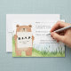 Invite friends and family with this charming RSVP card, featuring a sweet watercolor bear holding an RSVP sign, set in a fresh grassy meadow. Perfect for a boy’s baby shower or nature themed event, this friendly and gender-neutral design adds a whimsical woodland touch to your celebration. With ample space for guest names, attendance, dietary needs, and contact details, it’s a practical and delightful way to organise responses while creating a welcoming vibe guests will love.