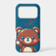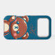 This cute teddy bear phone case features a sweet bear illustration on a deep teal blue background with a charming “Hi” detail.
