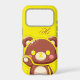This cute teddy bear phone case features a cheerful bear illustration on a vibrant yellow background with a sweet “Hi” detail.
